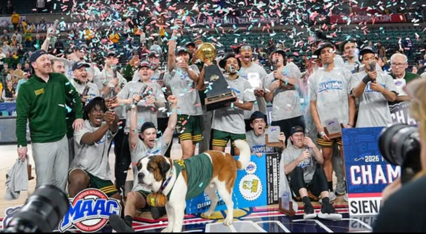 🐶 Mascot Madness: Siena is a Catholic school named in honor of St. Bernardino of Siena, a 15th-century Italian priest … whose name in English would be “St. Bernard” … so Siena has A LIVE SAINT BERNARD MASCOT!!!!!! His name is Baloo and he is GIGANTIC and SLEEPY and leads the Saints onto the court before home games! Baloo is the best mascot in the NCAA Tournament and I will pet him, in this life or the next.